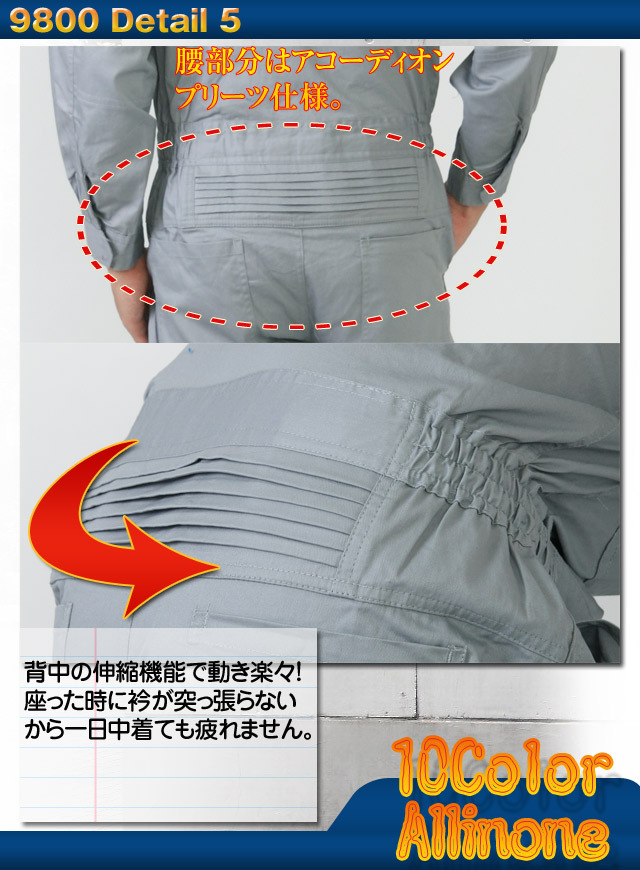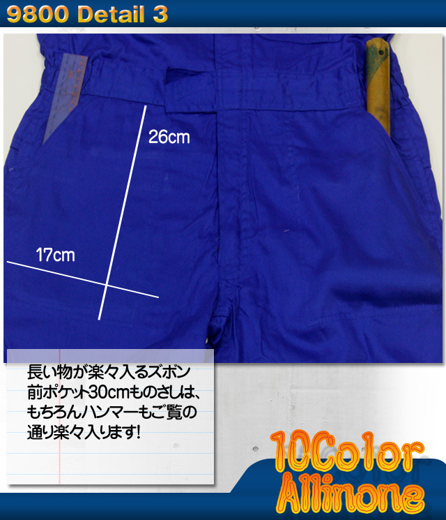 ![]() このつなぎは数回洗濯すると総丈が5cm前後縮みます。身長の数値は縮み率を計算して表示しています。 すそ上げを希望されるお客様へ