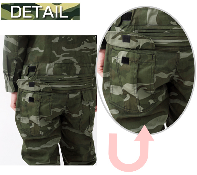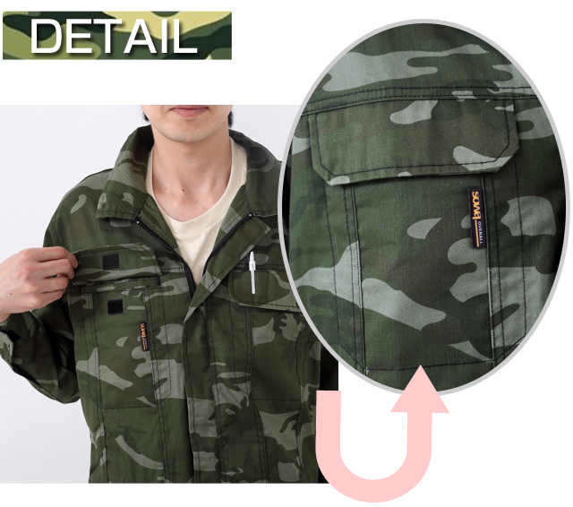 胸ポケットは幅14cm高さ17cmの裏から貼り付けてあるタイプです。通常は表から貼り付けるのですが迷彩柄を乱さないための工夫だと思います。